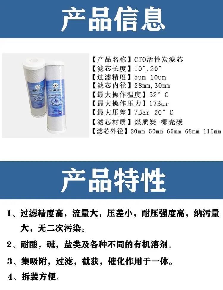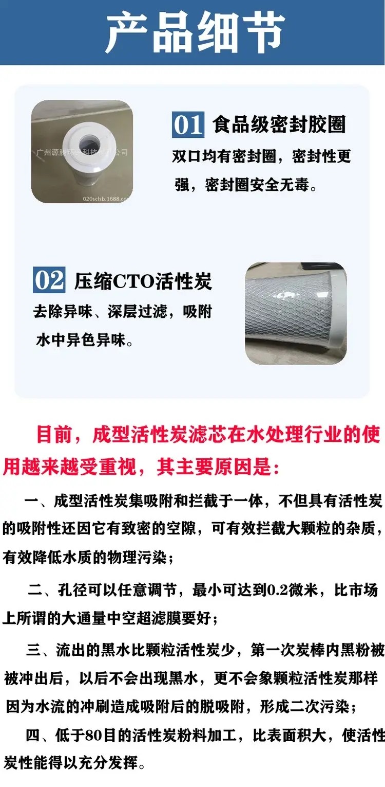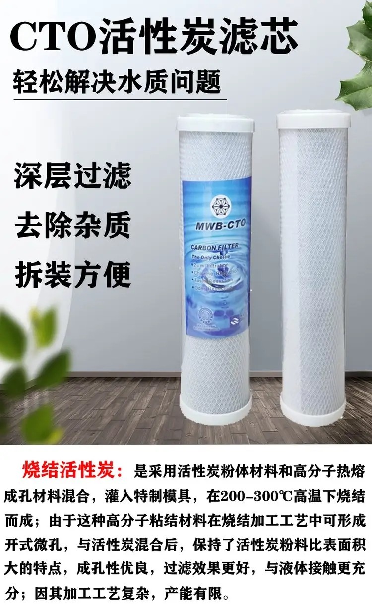 净水器cto滤芯10寸平口压缩活性炭棒批发